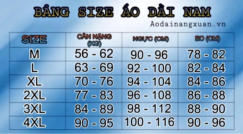 BẢNG SIZE ÁO DÀI NAM