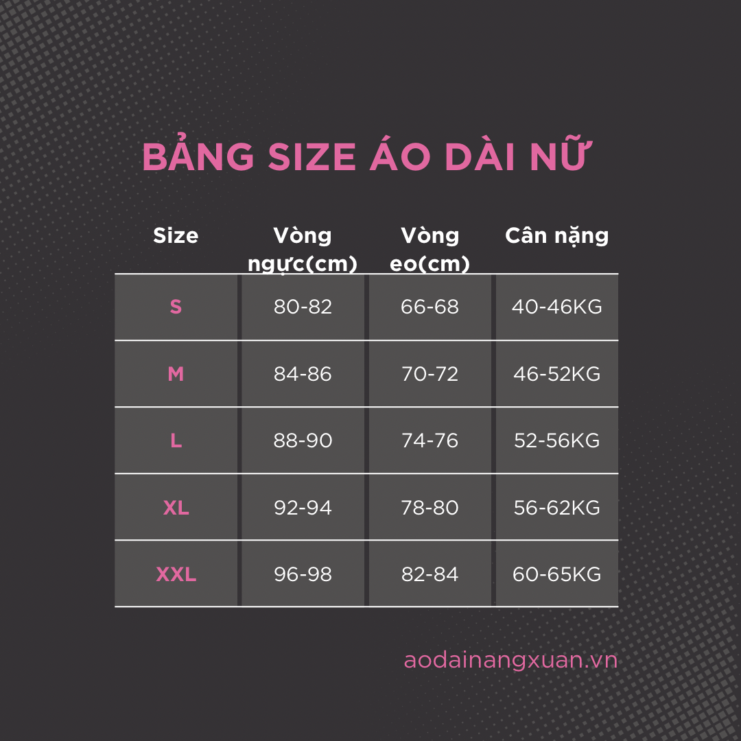 BẢNG SIZE ÁO DÀI NỮ