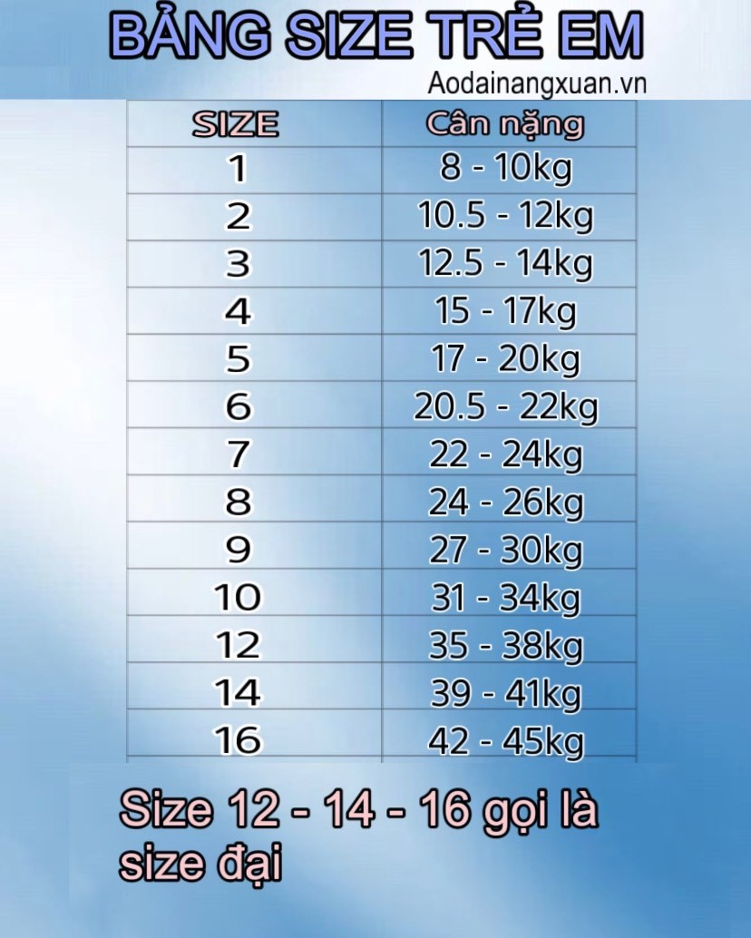 BẢNG SIZE ÁO DÀI TRẺ EM