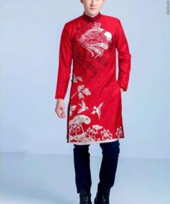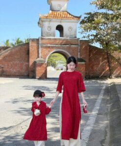 Áo dài mẹ & bé gái cách tân đỏ thêu hoa – dịu dàng, nổi bật ngày Tết