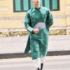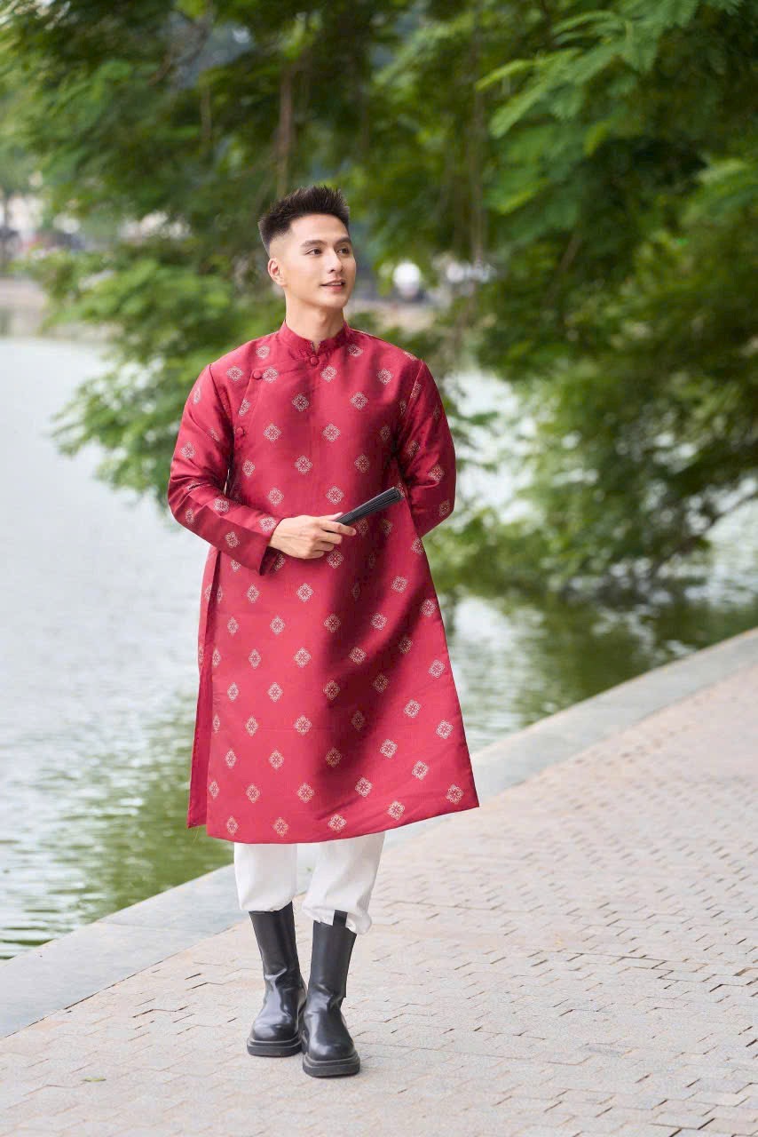 Áo dài cách tân nam gấm đỏ đô họa tiết cổ truyền – lịch lãm, nổi bật ngày Tết