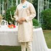 Áo dài cách tân nam gấm xanh tím than họa tiết cổ điển – sang trọng, lịch lãm