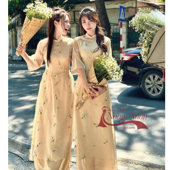 ÁO DÀI CÁCH TÂN HOA THÊU 2024