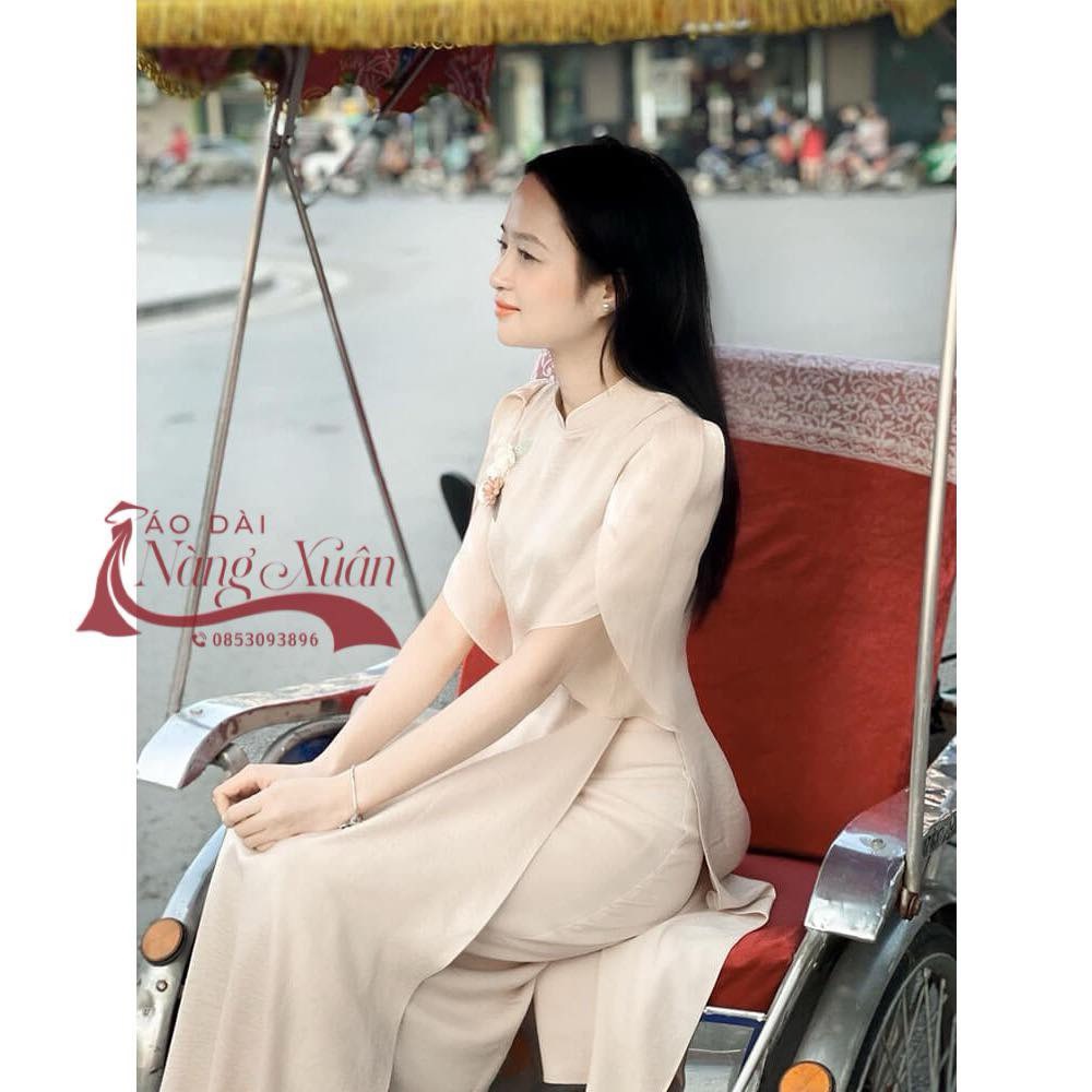 👉Chất liệu Lụa Tây Thi mềm mịn, tay áo với chất vải Lụa Tơ Óng tạo cảm giác bay bổng, tông màu hồng da, quần vải Lụa Ngọc Trai .