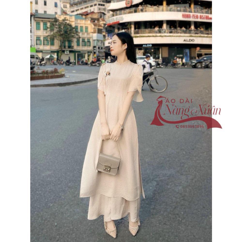 Áo Dài Cách Tân Nữ Tay Cánh Tiên Hoa kết thủ công