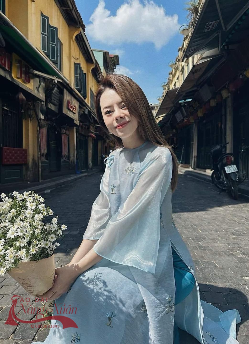 Gửi gắm hết thảy nét dịu dàng của thu lên tà áo dài tơ Mộc cao cấp. Bản phối được dệt trên chất liệu tơ Mộc thêu hoa mềm mại, trên phom dáng chiết suông thanh lịch vừa tạo cảm giác thoải mái, lại vừa che được bụng và bắp tay tốt __ Thông tin sản phẩm: