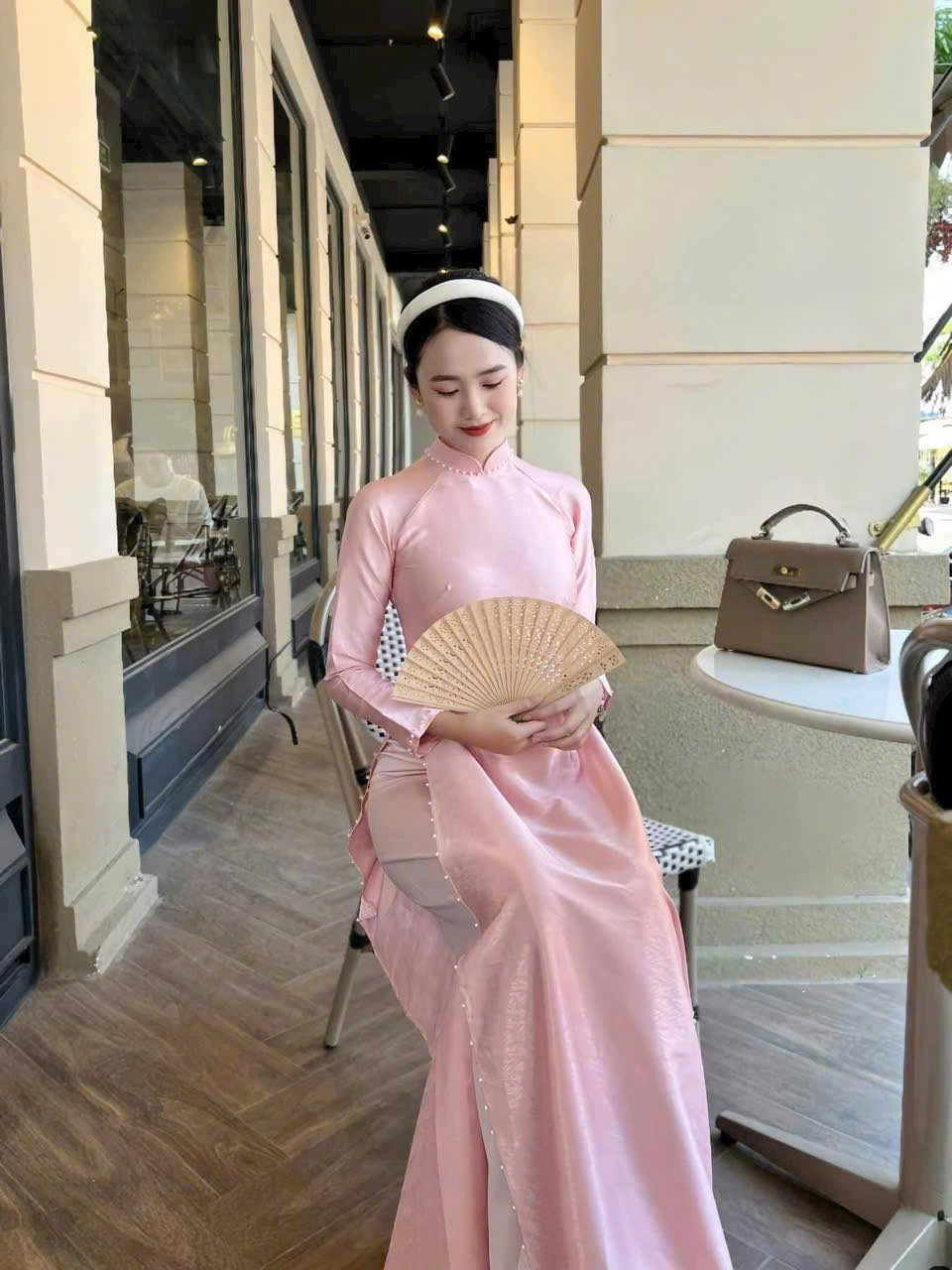 Áo dài cách truyền thống lụa hồng pastel tay dài – nhẹ nhàng, thanh lịch