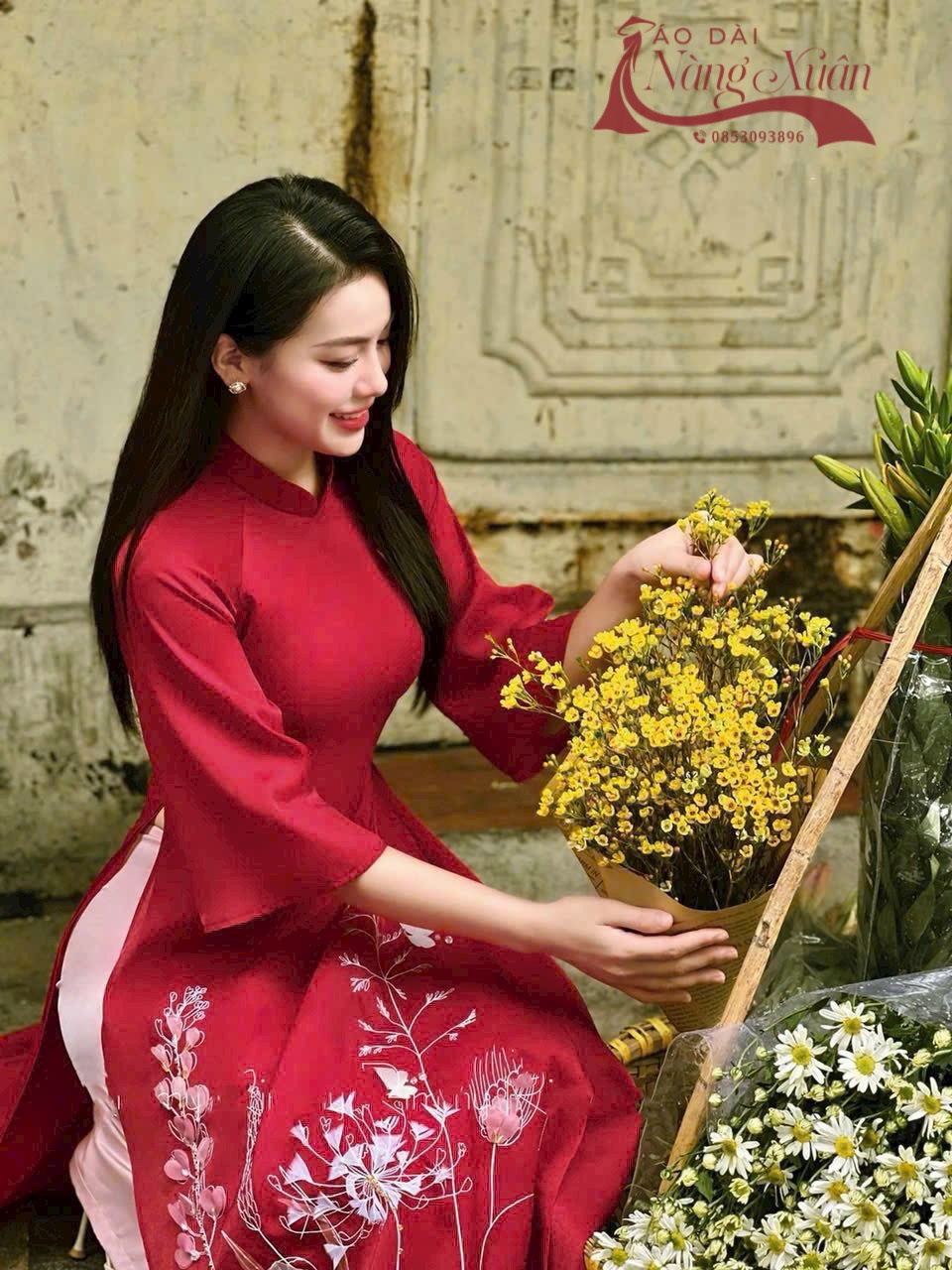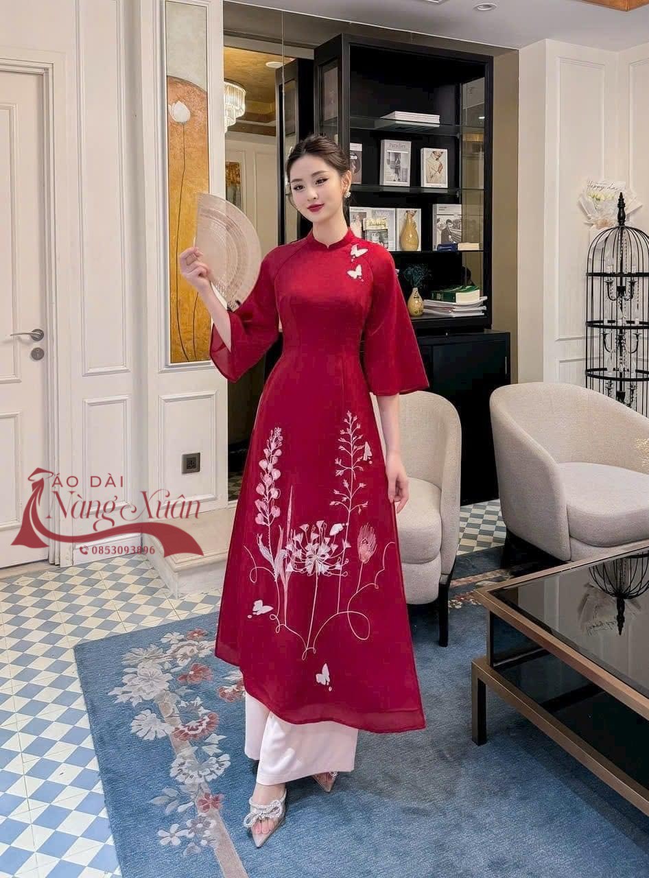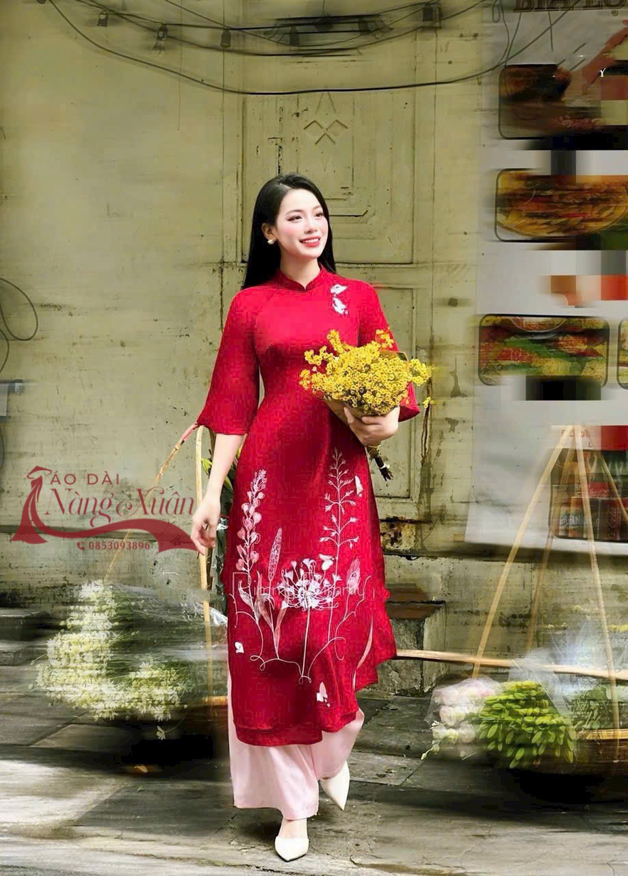 🌹 Xinh đẹp, rạng ngời đón Tết với em áo dài Cẩm Châu, tông màu quen thuộc và không thể thiếu mỗi dịp tết đến xuân về. Sắc đỏ may mắn kết hợp với hoạ tiết hoa tơ được đính kết thủ công vô cùng tinh tế.