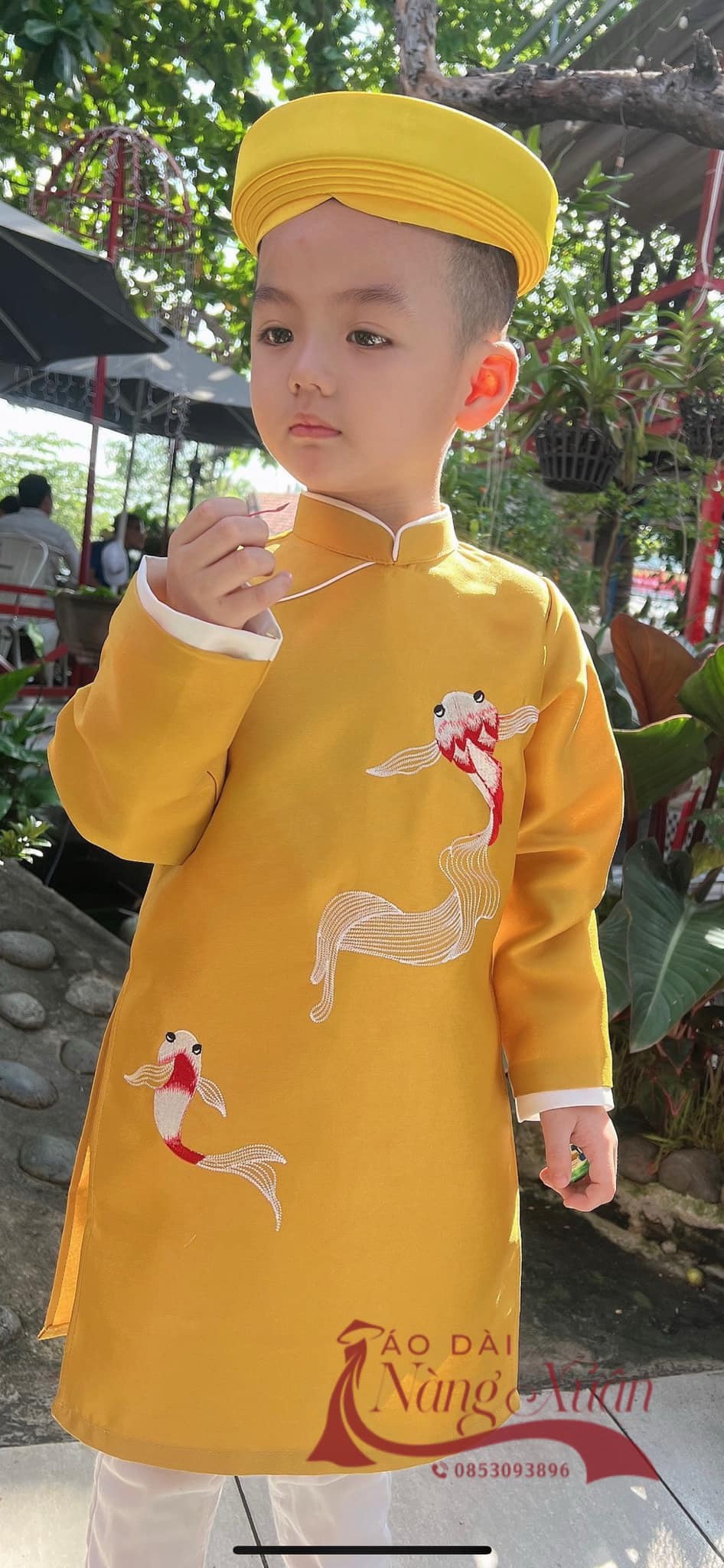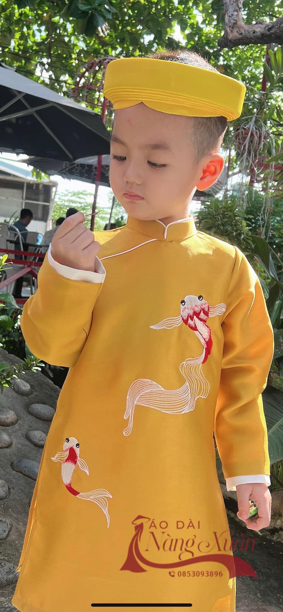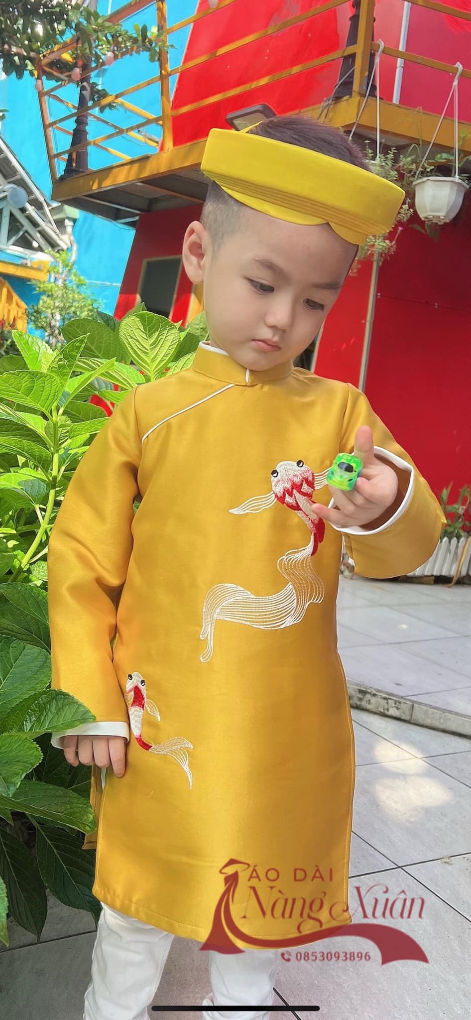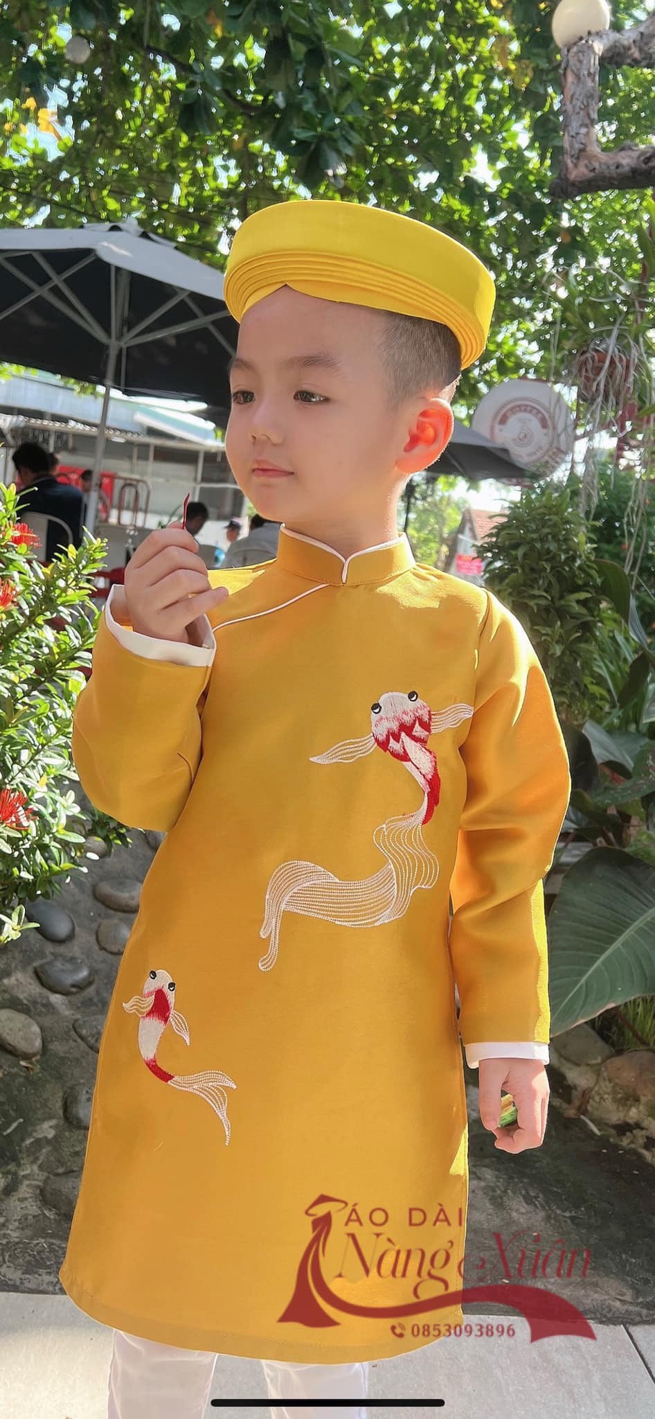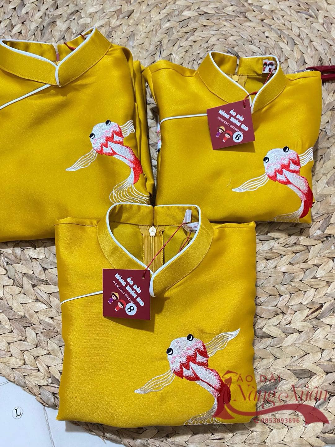 ÁO DÀI VÀNG THÊU CÁ CHÉP