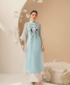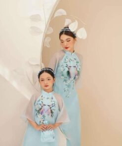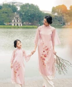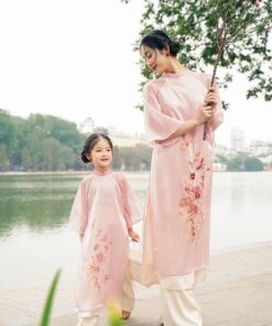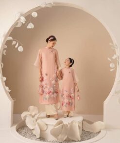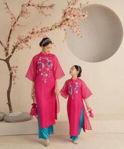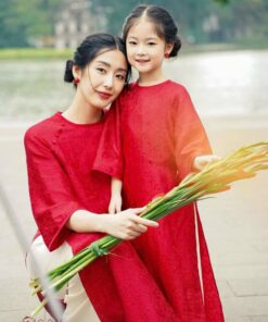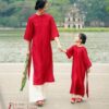 Áo dài mẹ & bé gái cách tân đỏ thêu hoa – dịu dàng, nổi bật ngày Tết