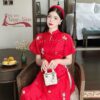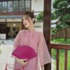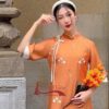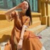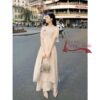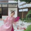 Thiết kế với chi tiết đính nơ đối xứng ở phần cổ áo giúp nàng 𝐓𝐮̛𝐨̛̀𝐧𝐠 𝐕𝐲 thêm phần kiêu kỳ và sang chảnh.